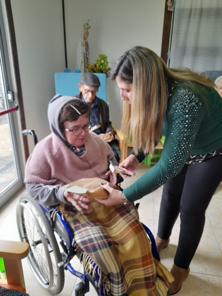 Hoje, em plena Quinta-Feira Santa, brindamos os nossos utentes de SAD e Centro de Dia com um folar de Páscoa.